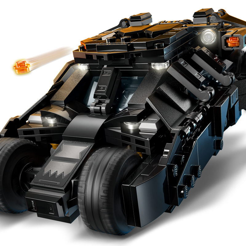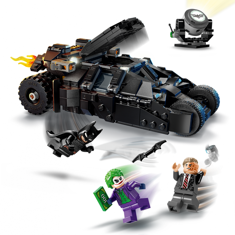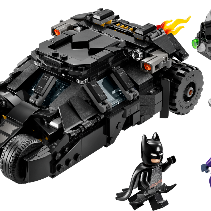 • LEGO® Batman™ Tumbler Batmobile™ – The toy car has a flame element attached to the tailpipe and opens to reveal an instrument panel and cockpit with room for the Batman minifigure
