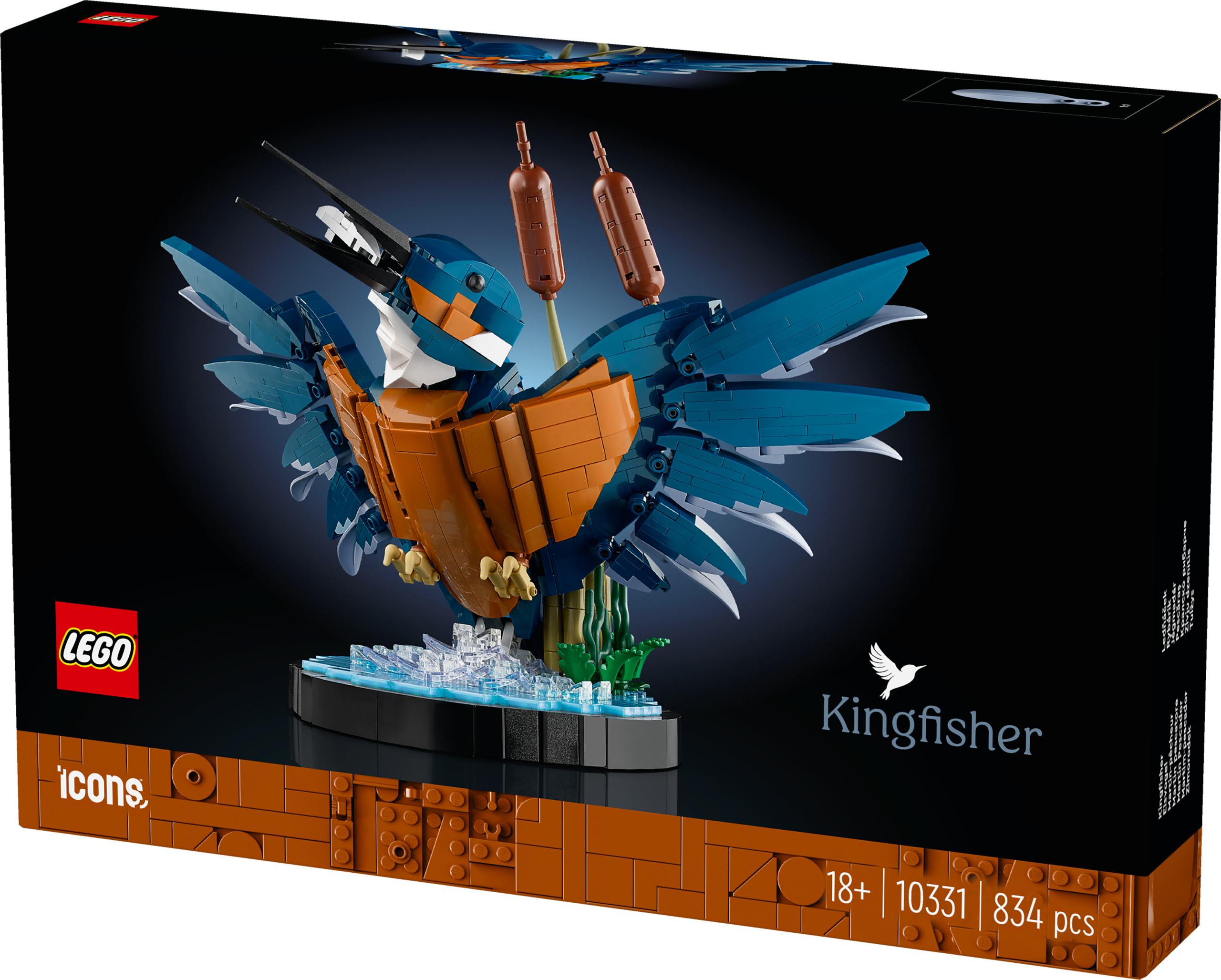 The kingfisher model depicts the bird, known for its striking plumage and remarkable hunting abilities, emerging from water with a fish catch. The water setting includes buildable reeds and doubles as a display stand. Position the bird’s head and claws to create your favourite pose before placing it on display for all to enjoy.
