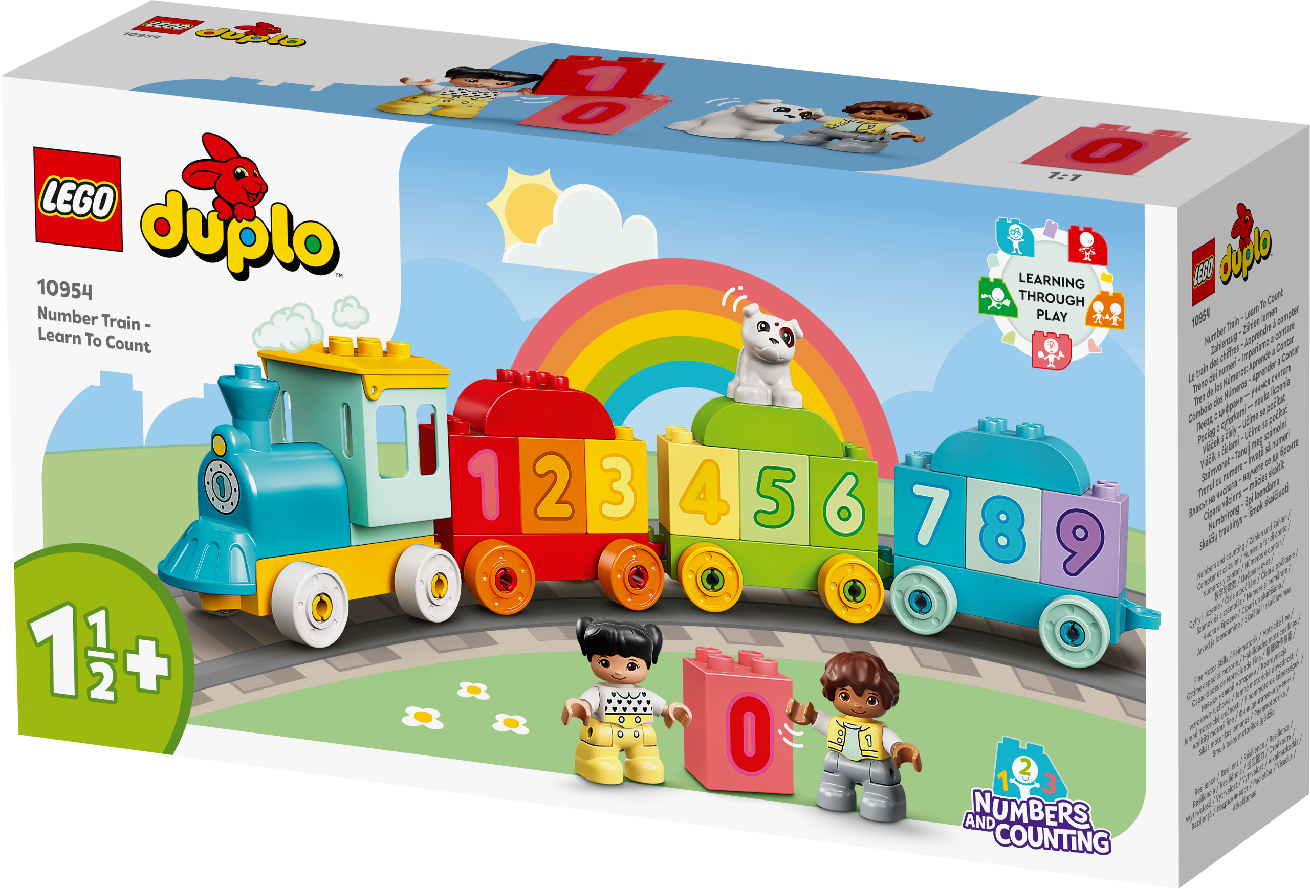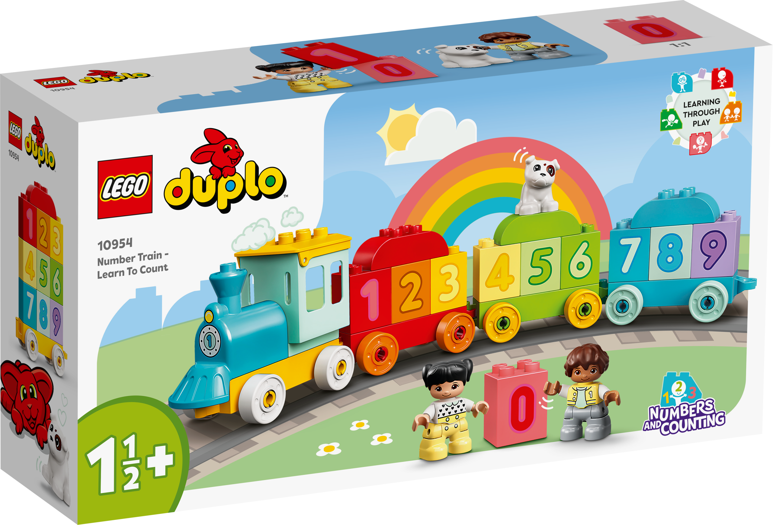 Catch the colourful new LEGO® DUPLO® My First Number Train – Learn To Count (10954). With 10 number bricks for toddlers to load, unload, stack and sort, plus girl, boy and dog DUPLO figures – the play-and-learn fun never ends.