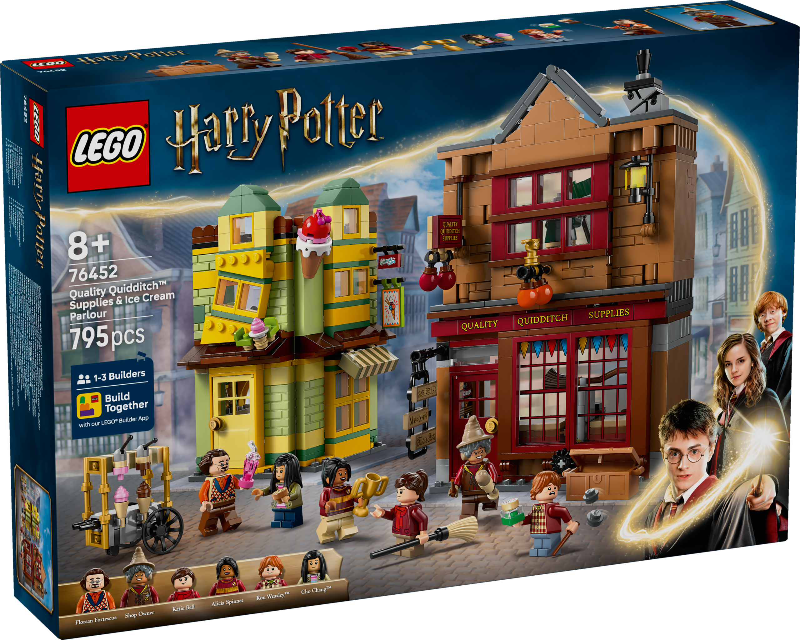 Quality Quidditch Supplies and Florean Fortescue’s Ice Cream Parlour can be connected to each other and to other LEGO Harry Potter Diagon Alley models (sold separately) to create an enchanting brick-built shopping street.